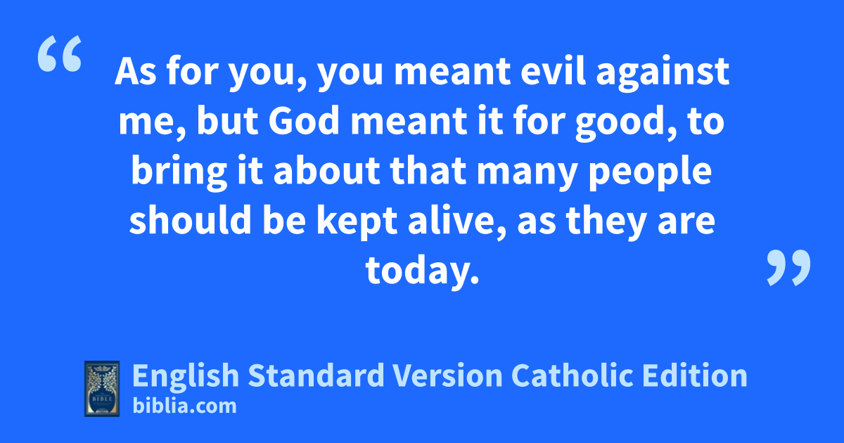 As for you, you meant evil against me, but God meant it for good, to bring it about that many people should be kept alive, as they are today.