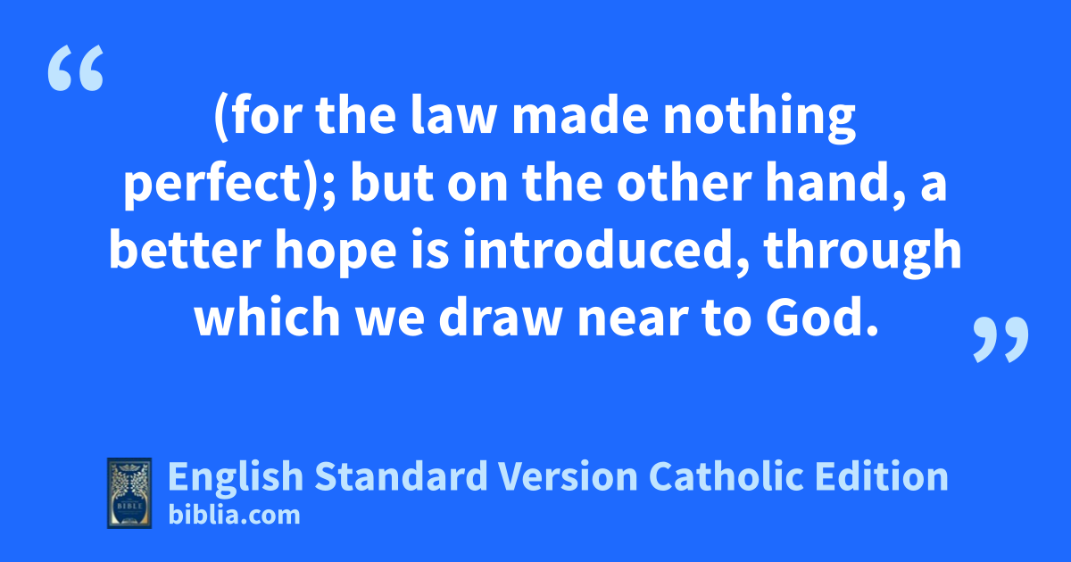 (for the law made nothing perfect); but on the other hand, a better hope is introduced, through which we draw near to God.
