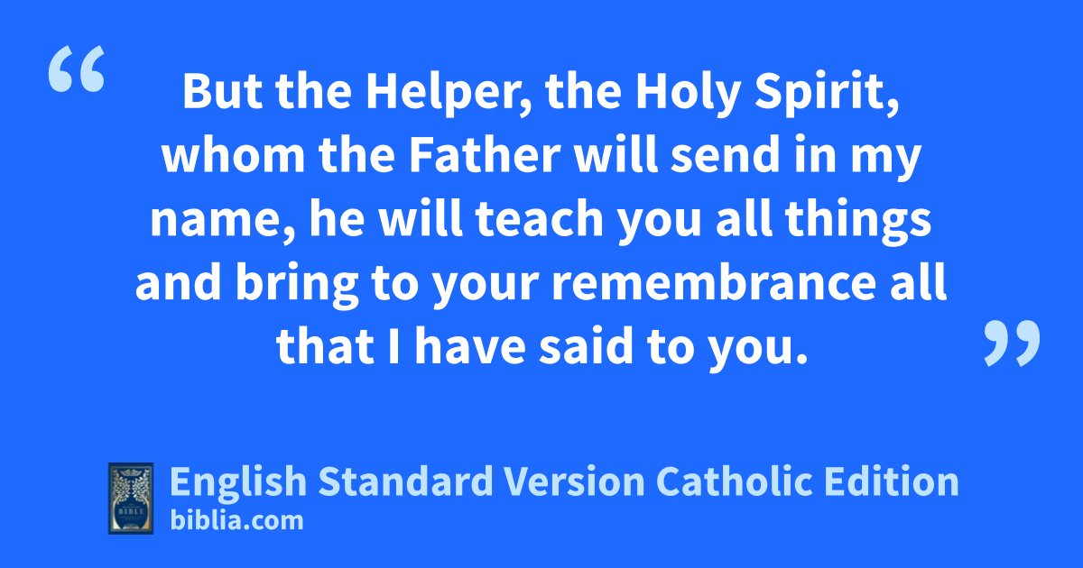 But the Helper, the Holy Spirit, whom the Father will send in my name, he will teach you all things and bring to your remembrance all that I have said to you.