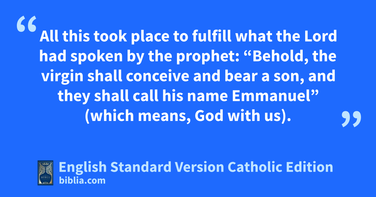 All this took place to fulfill what the Lord had spoken by the prophet: “Behold, the virgin shall conceive and bear a son, and they shall call his name Emmanuel” (which means, God with us).
