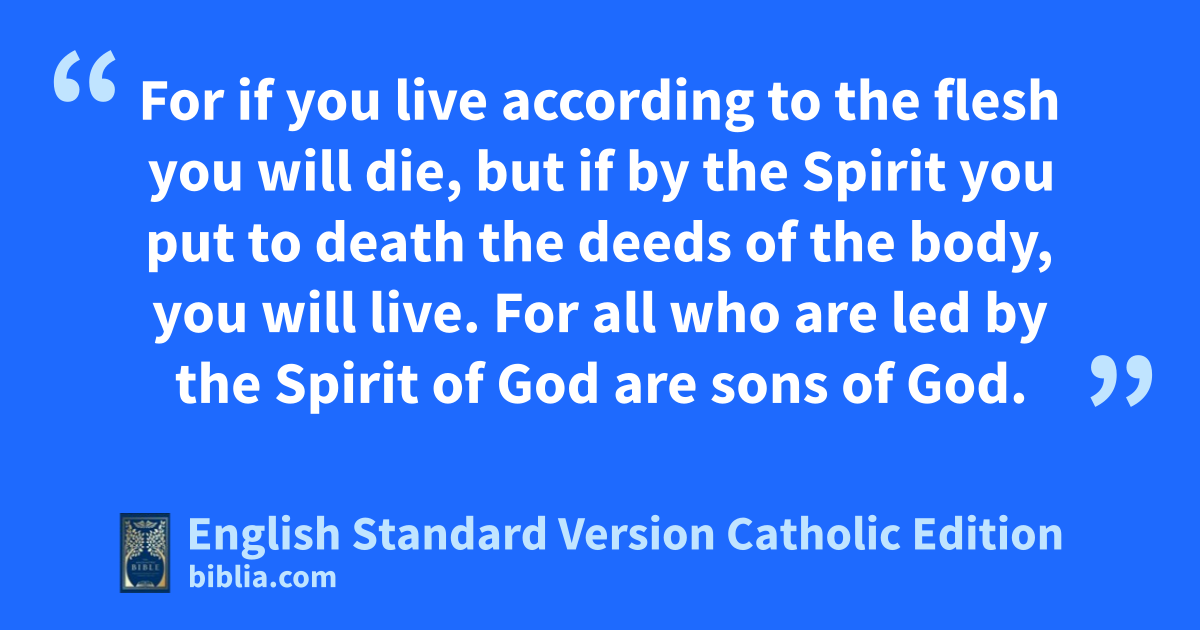 For if you live according to the flesh you will die, but if by the Spirit you put to death the deeds of the body, you will live. For all who are led by the Spirit of God are sons of God.