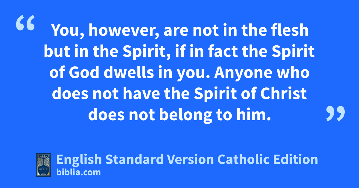 You, however, are not in the flesh but in the Spirit, if in fact the Spirit of God dwells in you. Anyone who does not have the Spirit of Christ does not belong to him.
