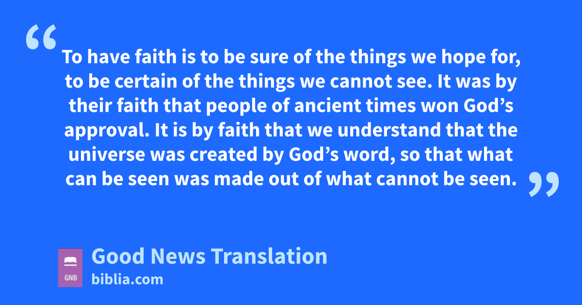 11 To have faith is to be sure of the things we hope for, to be certain of the things we cannot see. 2It was by their faith that people of ancient times won God’s approval.