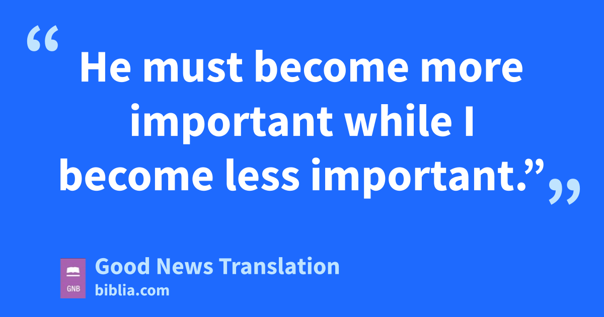 27 John answered, “No one can have anything unless God gives it to him. 28*You yourselves are my witnesses that I said, ‘I am not the Messiah, but I have been sent ahead of him.’ 29The bridegroom is the one to whom the bride belongs; but the bridegroom’s friend, who stands by and listens, is glad when he hears the bridegroom’s voice. This is how my own happiness is made complete. 30He must become more important while I become less important.”