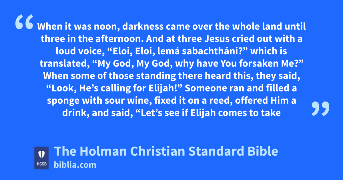 33 When c it was noon, d darkness came over the whole land e until three in the afternoon. f g 34 And at three h Jesus cried out with a loud voice, “Eloi, Eloi, lemá i sabachtháni?” which is translated, “My God, My God, why have You forsaken Me?” j k