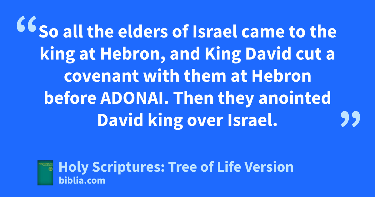 So all the elders of Israel came to the king at Hebron, and King David cut a covenant with them at Hebron before ADONAI. Then they anointed David king over Israel.