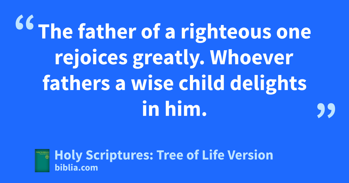 The father of a righteous one rejoices greatly. Whoever fathers a wise child delights in him.