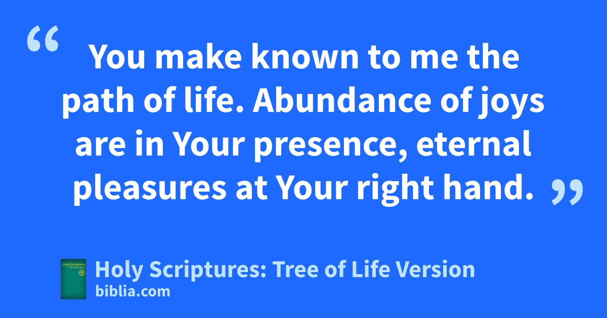 You make known to me the path of life. Abundance of joys are in Your presence, eternal pleasures at Your right hand.
