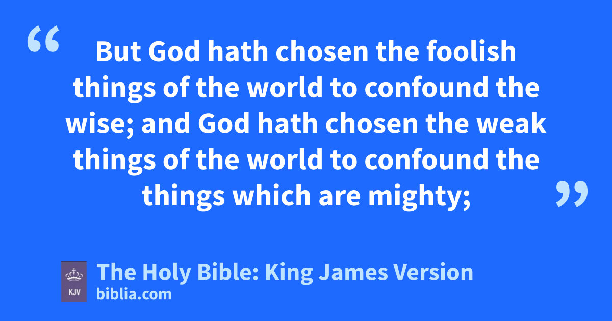 17 For Christ sent me not to baptize, but to preach the gospel: not with wisdom of wordsc, lest the cross of Christ should be made of none effect. 18 For the preaching of the cross is to them that perish foolishness; but unto us which are saved it is the power of God. 19 For it is written, I will destroy the wisdom of the wise, and will bring to nothing the understanding of the prudent. 20 Where is the wise? where is the scribe? where is the disputer of this world? hath not God made foolish the wisdom of this world? 21 For after that in the wisdom of God the world by wisdom knew not God, it pleased God by the foolishness of preaching to save them that believe. 22 For the Jews require a sign, and the Greeks seek after wisdom: 23 But we preach Christ crucified, unto the Jews a stumblingblock, and unto the Greeks foolishness; 24 But unto them which are called, both Jews and Greeks, Christ the power of God, and the wisdom of God. 25 Because the foolishness of God is wiser than men; and the weakness of God is stronger than men. 26 For ye see your calling, brethren, how that not many wise men after the flesh, not many mighty, not many noble, are called: 27 But God hath chosen the foolish things of the world to confound the wise; and God hath chosen the weak things of the world to confound the things which are mighty; 28 And base things of the world, and things which are despised, hath God chosen, yea, and things which are not, to bring to nought things that are: 29 That no flesh should glory in his presence. 30 But of him are ye in Christ Jesus, who of God is made unto us wisdom, and righteousness, and sanctification, and redemption: 31 That, according as it is written, He that glorieth, let him glory in the Lord.