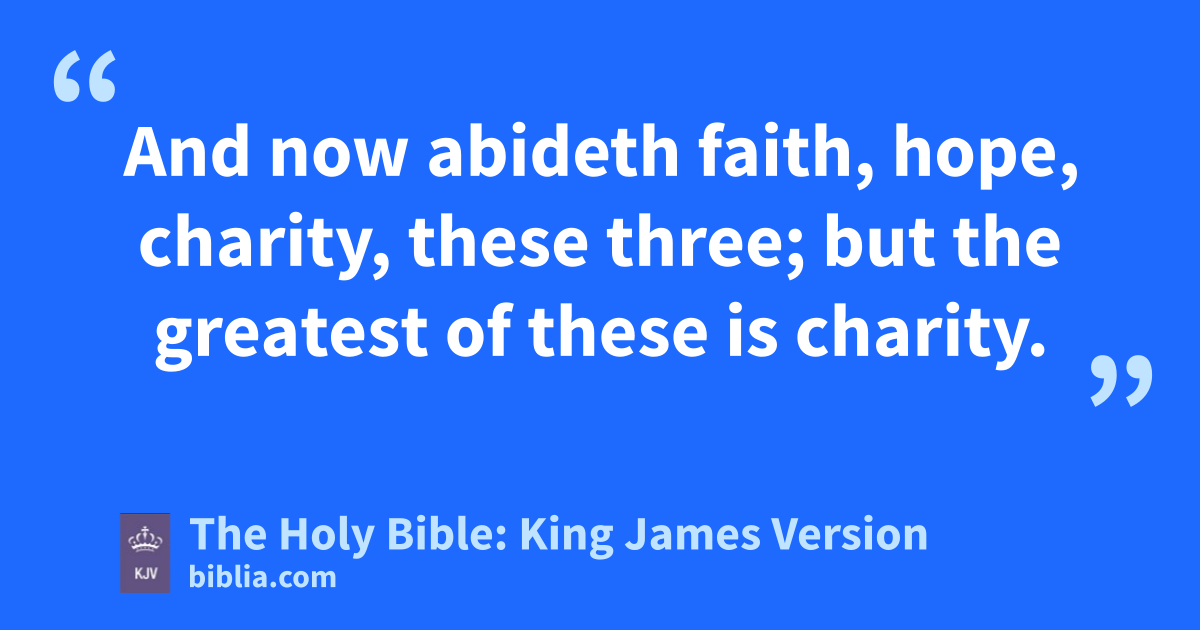 1 Though I speak with the tongues of men and of angels, and have not charity, I am become as sounding brass, or a tinkling cymbal. 2 And though I have the gift of prophecy, and understand all mysteries, and all knowledge; and though I have all faith, so that I could remove mountains, and have not charity, I am nothing. 3 And though I bestow all my goods to feed the poor, and though I give my body to be burned, and have not charity, it profiteth me nothing.