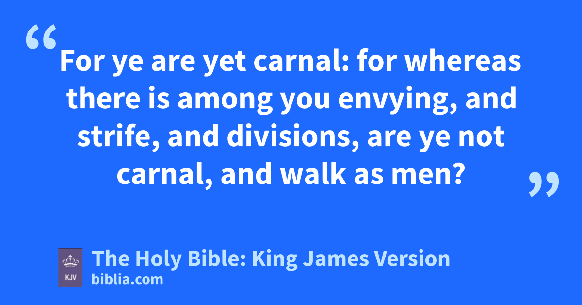 1 And I, brethren, could not speak unto you as unto spiritual, but as unto carnal, even as unto babes in Christ. 2 I have fed you with milk, and not with meat: for hitherto ye were not able to bear it, neither yet now are ye able. 3 For ye are yet carnal: for whereas there is among you envying, and strife, and divisionsa, are ye not carnal, and walk as men? 4 For while one saith, I am of Paul; and another, I am of Apollos; are ye not carnal?