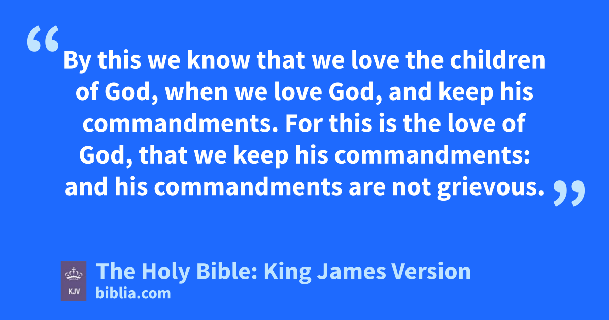 1 Whosoever believeth that Jesus is the Christ is borna of God: and every one that loveth him that begat loveth him also that is begotten of him. 2 By this we know that we love the children of God, when we love God, and keep his commandments. 3 For this is the love of God, that we keep his commandments: and his commandments are not grievous. 4 For whatsoever is born of God overcometh the world: and this is the victory that overcometh the world, even our faith. 5 Who is he that overcometh the world, but he that believeth that Jesus is the Son of God?