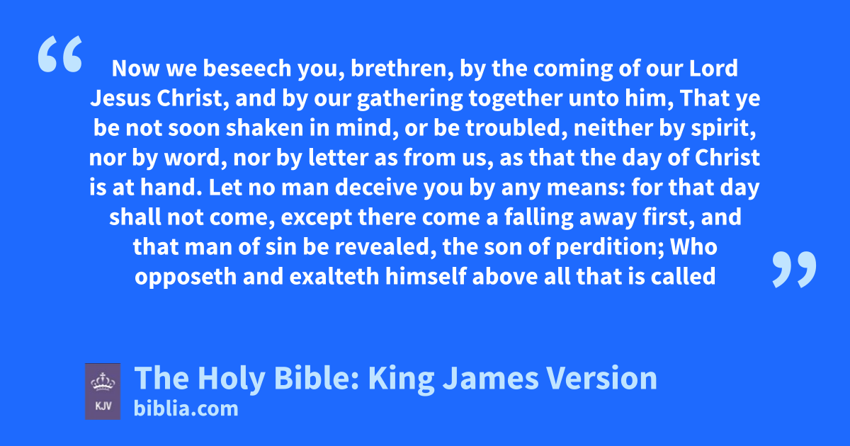 1 Now we beseech you, brethren, by the coming of our Lord Jesus Christ, and by our gathering together unto hima, 2 That ye be not soon shaken in mind, or be troubled, neither by spirit, nor by word, nor by letter as from us, as that the day of Christ is at hand.