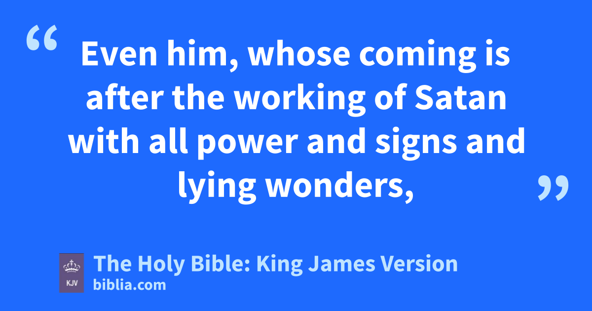 3 Let no man deceive you by any means: for that day shall not come, except there come a falling away first, and that man of sin be revealed, the son of perdition; 4 Who opposeth and exalteth himself above all that is called God, or that is worshipped; so that he as God sitteth in the temple of God, shewing himself that he is God. 5 Remember ye not, that, when I was yet with you, I told you these things? 6 And now ye know what withholdethb that he might be revealed in his time. 7 For the mystery of iniquity doth already work: only he who now letteth will let, until he be taken out of the way. 8 And then shall that Wicked be revealed, whom the Lord shall consume with the spirit of his mouth, and shall destroy with the brightness of his coming: 9 Even him, whose coming is after the working of Satan with all power and signs and lying wonders, 10 And with all deceivableness of unrighteousness in them that perish; because they received not the love of the truth, that they might be saved. 11 And for this cause God shall send them strong delusion, that they should believe a lie: 12 That they all might be damned who believed not the truth, but had pleasure in unrighteousness.