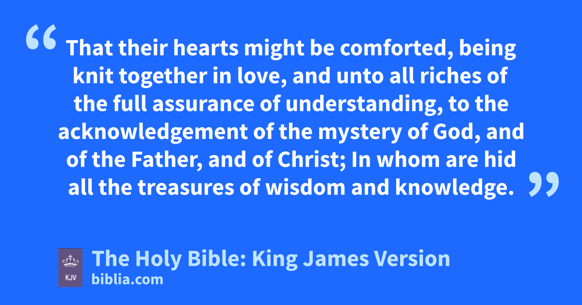 1 For I would that ye knew what great conflicta I have for you, and for them at Laodicea, and for as many as have not seen my face in the flesh; 2 That their hearts might be comforted, being knit together in love, and unto all riches of the full assurance of understanding, to the acknowledgement of the mystery of God, and of the Father, and of Christ; 3 In whomb are hid all the treasures of wisdom and knowledge.
