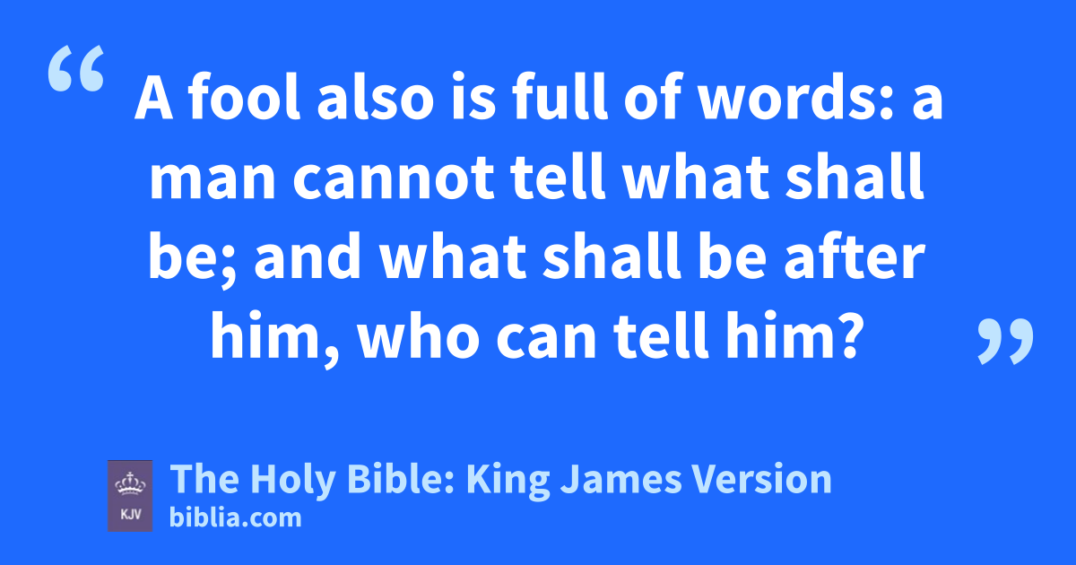 12 The words of a wise man’s mouth are graciouse; but the lips of a fool will swallow up himself. 13 The beginning of the words of his mouth is foolishness: and the end of his talkf is mischievous madness. 14 A fool also is fullg of words: a man cannot tell what shall be; and what shall be after him, who can tell him? 15 The labour of the foolish wearieth every one of them, because he knoweth not how to go to the city.