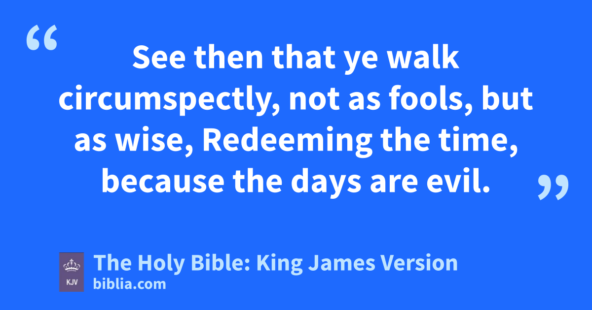 3 But fornication, and all uncleanness, or covetousness, let it not be once named among you, as becometh saints; 4 Neither filthiness, nor foolish talking, nor jesting, which are not convenient: but rather giving of thanks. 5 For this ye know, that no whoremonger, nor unclean person, nor covetous man, who is an idolater, hath any inheritance in the kingdom of Christ and of God. 6 Let no man deceive you with vain words: for because of these things cometh the wrath of God upon the children of disobediencea. 7 Be not ye therefore partakers with them. 8 For ye were sometimes darkness, but now are ye light in the Lord: walk as children of light: 9 (For the fruit of the Spirit is in all goodness and righteousness and truth;) 10 Proving what is acceptable unto the Lord. 11 And have no fellowship with the unfruitful works of darkness, but rather reprove them. 12 For it is a shame even to speak of those things which are done of them in secret. 13 But all things that are reprovedb are made manifest by the light: for whatsoever doth make manifest is light. 14 Wherefore he saith, Awake thou that sleepest, and arise from the dead, and Christ shall give thee light. 15 See then that ye walk circumspectly, not as fools, but as wise, 16 Redeeming the time, because the days are evil. 17 Wherefore be ye not unwise, but understanding what the will of the Lord is. 18 And be not drunk with wine, wherein is excess; but be filled with the Spirit; 19 Speaking to yourselves in psalms and hymns and spiritual songs, singing and making melody in your heart to the Lord; 20 Giving thanks always for all things unto God and the Father in the name of our Lord Jesus Christ;