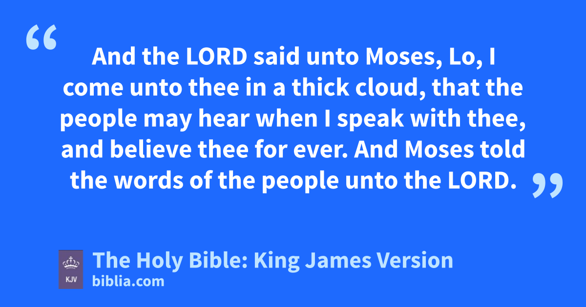 9 And the LORD said unto Moses, Lo, I come unto thee in a thick cloud, that the people may hear when I speak with thee, and believe thee for ever. And Moses told the words of the people unto the LORD. 10 And the LORD said unto Moses, Go unto the people, and sanctify them to day and to morrow, and let them wash their clothes, 11 And be ready against the third day: for the third day the LORD will come down in the sight of all the people upon mount Sinai. 12 And thou shalt set bounds unto the people round about, saying, Take heed to yourselves, that ye go not up into the mount, or touch the border of it: whosoever toucheth the mount shall be surely put to death: 13 There shall not an hand touch it, but he shall surely be stoned, or shot through; whether it be beast or man, it shall not live: when the trumpeta soundeth long, they shall come up to the mount. 14 And Moses went down from the mount unto the people, and sanctified the people; and they washed their clothes. 15 And he said unto the people, Be ready against the third day: come not at your wives.