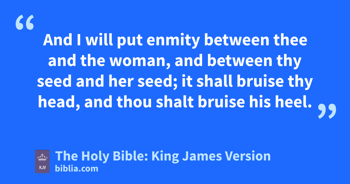 14 And the LORD God said unto the serpent, Because thou hast done this, thou art cursed above all cattle, and above every beast of the field; upon thy belly shalt thou go, and dust shalt thou eat all the days of thy life: 15 And I will put enmity between thee and the woman, and between thy seed and her seed; it shall bruise thy head, and thou shalt bruise his heel.