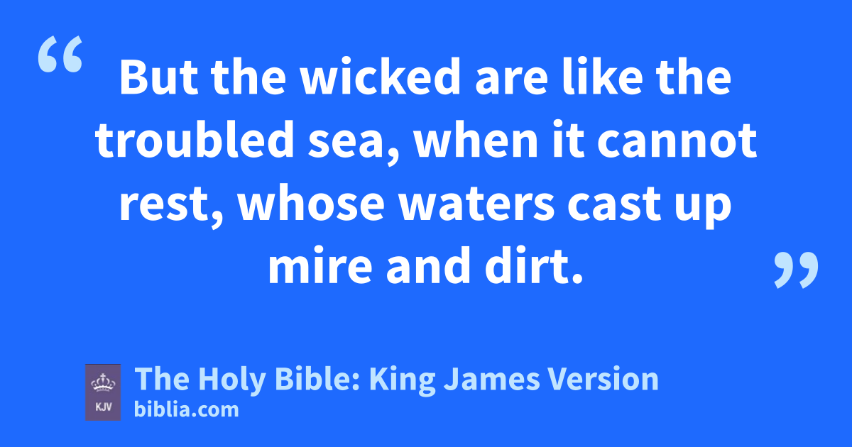 17 For the iniquity of his covetousness was I wroth, and smote him: I hid me, and was wroth, and he went on frowardlyd in the way of his heart. 18 I have seen his ways, and will heal him: I will lead him also, and restore comforts unto him and to his mourners. 19 I create the fruit of the lips; Peace, peace to him that is far off, and to him that is near, saith the LORD; and I will heal him. 20 But the wicked are like the troubled sea, when it cannot rest, whose waters cast up mire and dirt. 21 There is no peace, saith my God, to the wicked.