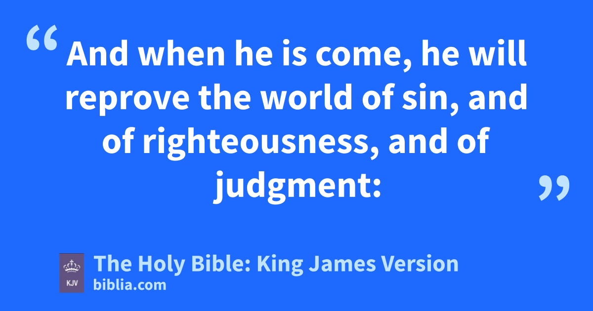 7 Nevertheless I tell you the truth; It is expedient for you that I go away: for if I go not away, the Comforter will not come unto you; but if I depart, I will send him unto you. 8 And when he is come, he will reproveb the world of sin, and of righteousness, and of judgment: 9 Of sin, because they believe not on me; 10 Of righteousness, because I go to my Father, and ye see me no more; 11 Of judgment, because the prince of this world is judged. 12 I have yet many things to say unto you, but ye cannot bear them now. 13 Howbeit when he, the Spirit of truth, is come, he will guide you into all truth: for he shall not speak of himself; but whatsoever he shall hear, that shall he speak: and he will shew you things to come. 14 He shall glorify me: for he shall receive of mine, and shall shew it unto you. 15 All things that the Father hath are mine: therefore said I, that he shall take of mine, and shall shew it unto you.