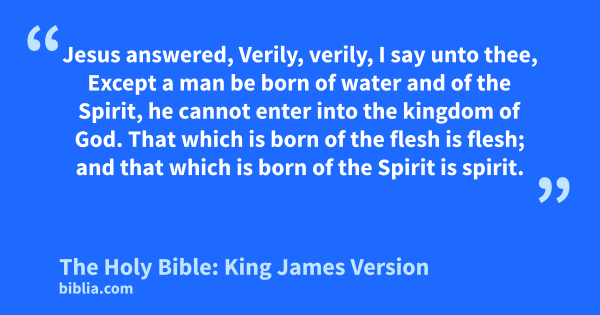 1 † There was a man of the Pharisees, named Nicodemus, a ruler of the Jews: 2 The same came to Jesus by night, and said unto him, Rabbi, we know that thou art a teacher come from God: for no man can do these miracles that thou doest, except God be with him. 3 Jesus answered and said unto him, Verily, verily, I say unto thee, Except a man be born againa, he cannot see the kingdom of God. 4 Nicodemus saith unto him, How can a man be born when he is old? can he enter the second time into his mother’s womb, and be born? 5 Jesus answered, Verily, verily, I say unto thee, Except a man be born of water and of the Spirit, he cannot enter into the kingdom of God. 6 That which is born of the flesh is flesh; and that which is born of the Spirit is spirit. 7 Marvel not that I said unto thee, Ye must be born againb. 8 The wind bloweth where it listeth, and thou hearest the sound thereof, but canst not tell whence it cometh, and whither it goeth: so is every one that is born of the Spirit. 9 Nicodemus answered and said unto him, How can these things be? 10 Jesus answered and said unto him, Art thou a master of Israel, and knowest not these things? 11 Verily, verily, I say unto thee, We speak that we do know, and testify that we have seen; and ye receive not our witness. 12 If I have told you earthly things, and ye believe not, how shall ye believe, if I tell you of heavenly things? 13 And no man hath ascended up to heaven, but he that came down from heaven, even the Son of man which is in heaven. 14 And as Moses lifted up the serpent in the wilderness, even so must the Son of man be lifted up: 15 That whosoever believeth in him should not perish, but have eternal life. 16 For God so loved the world, that he gave his only begotten Son, that whosoever believeth in him should not perish, but have everlasting life. 17 For God sent not his Son into the world to condemn the world; but that the world through him might be saved. 18 He that believeth on him is not condemned: but he that believeth not is condemned already, because he hath not believed in the name of the only begotten Son of God. 19 And this is the condemnation, that light is come into the world, and men loved darkness rather than light, because their deeds were evil. 20 For every one that doeth evil hateth the light, neither cometh to the light, lest his deeds should be reprovedc. 21 But he that doeth truth cometh to the light, that his deeds may be made manifest, that they are wrought in God.