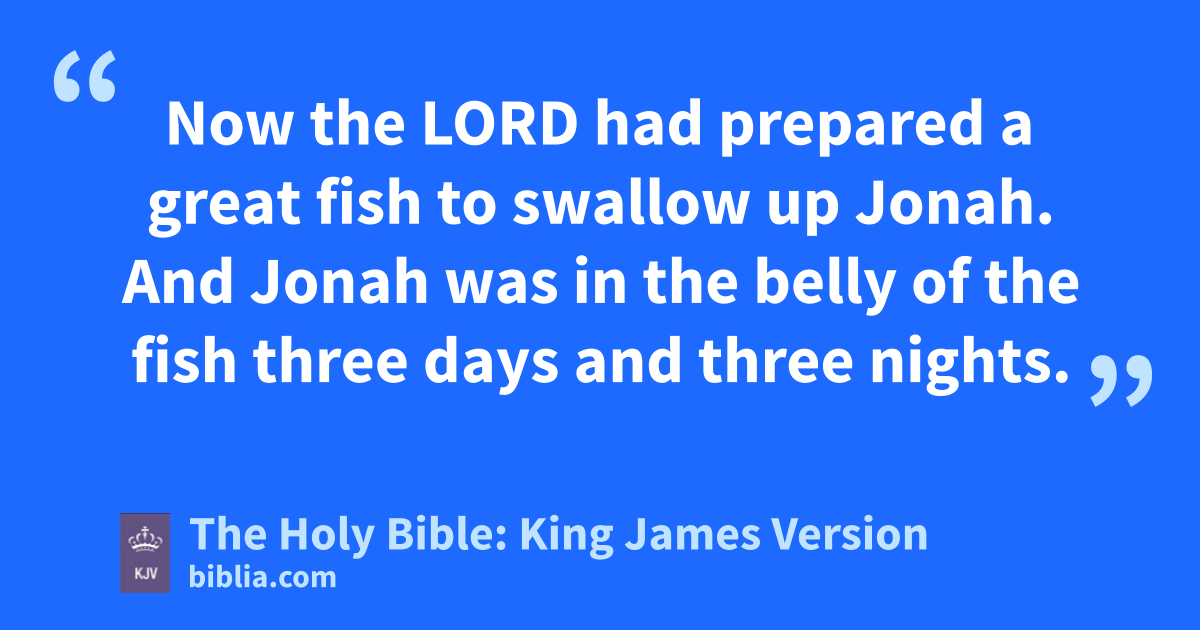11 Then said they unto him, What shall we do unto thee, that the sea may be calm unto us? for the sea wrought, and was tempestuous. 12 And he said unto them, Take me up, and cast me forth into the sea; so shall the sea be calm unto you: for I know that for my sake this great tempest is upon you. 13 Nevertheless the men rowed hard to bring it to the land; but they could not: for the sea wrought, and was tempestuous against them. 14 Wherefore they cried unto the LORD, and said, We beseech thee, O LORD, we beseech thee, let us not perish for this man’s life, and lay not upon us innocent blood: for thou, O LORD, hast done as it pleased thee. 15 So they took up Jonah, and cast him forth into the sea: and the sea ceasede from her raging. 16 Then the men feared the LORD exceedingly, and offeredf a sacrifice unto the LORD, and made vows. 17 Now the LORD had prepared a great fish to swallow up Jonah. And Jonah was in the bellyg of the fish three days and three nights.