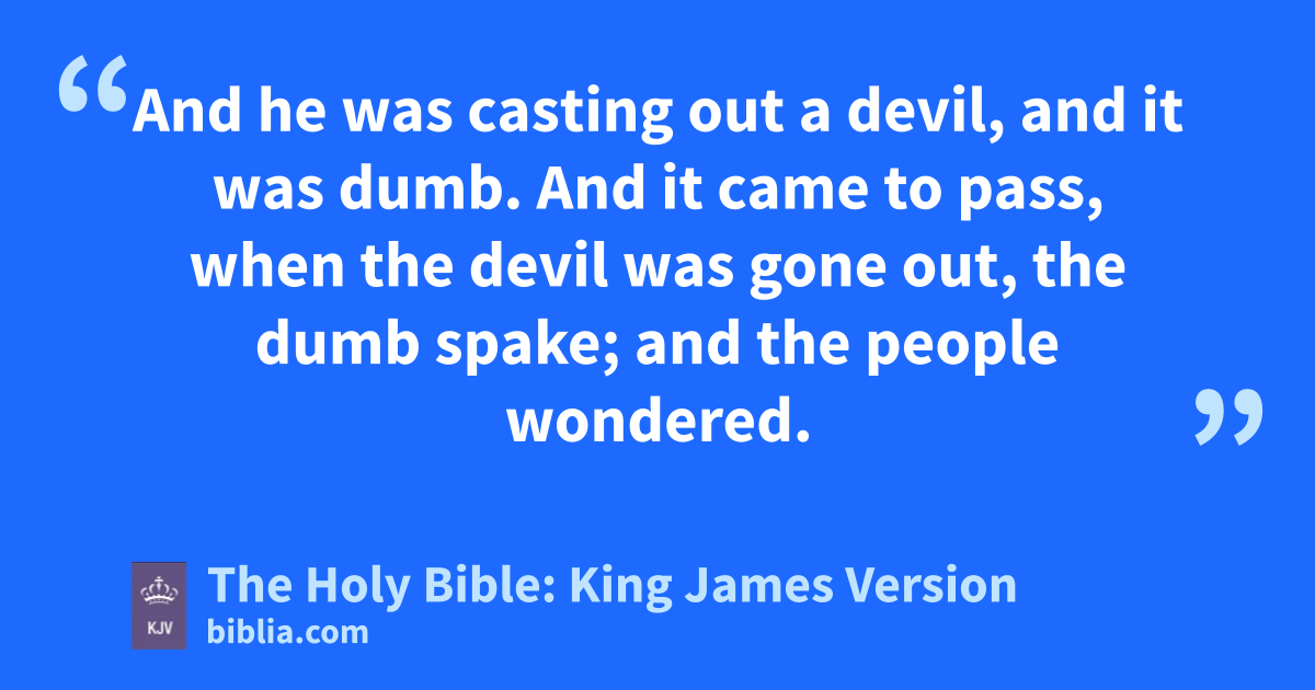 14 And he was casting out a devil, and it was dumb. And it came to pass, when the devil was gone out, the dumb spake; and the people wondered. 15 But some of them said, He casteth out devils through Beelzebubd the chief of the devils. 16 And others, tempting him, sought of him a sign from heaven. 17 But he, knowing their thoughts, said unto them, Every kingdom divided against itself is brought to desolation; and a house divided against a house falleth. 18 If Satan also be divided against himself, how shall his kingdom stand? because ye say that I cast out devils through Beelzebub. 19 And if I by Beelzebub cast out devils, by whom do your sons cast them out? therefore shall they be your judges. 20 But if I with the finger of God cast out devils, no doubt the kingdom of God is come upon you. 21 When a strong man armed keepeth his palace, his goods are in peace: 22 But when a stronger than he shall come upon him, and overcome him, he taketh from him all his armour wherein he trusted, and divideth his spoils. 23 He that is not with me is against me: and he that gathereth not with me scattereth. 24 When the unclean spirit is gone out of a man, he walketh through dry places, seeking rest; and finding none, he saith, I will return unto my house whence I came out. 25 And when he cometh, he findeth it swept and garnished. 26 Then goeth he, and taketh to him seven other spirits more wicked than himself; and they enter in, and dwell there: and the last state of that man is worse than the first.