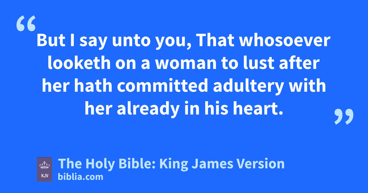 27 Ye have heard that it was said by them of old time, Thou shalt not commit adultery: 28 But I say unto you, That whosoever looketh on a woman to lust after her hath committed adultery with her already in his heart. 29 And if thy right eye offendd thee, pluck it out, and cast it from thee: for it is profitable for thee that one of thy members should perish, and not that thy whole body should be cast into hell. 30 And if thy right hand offend thee, cut it off, and cast it from thee: for it is profitable for thee that one of thy members should perish, and not that thy whole body should be cast into hell. 31 † It hath been said, Whosoever shall put away his wife, let him give her a writing of divorcement: 32 But I say unto you, That whosoever shall put away his wife, saving for the cause of fornication, causeth her to commit adultery: and whosoever shall marry her that is divorced committeth adultery.