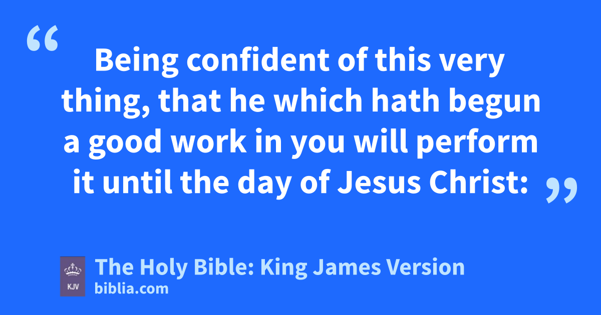 3 I thank my God upon every remembrancea of you, 4 Always in every prayer of mine for you all making request with joy, 5 For your fellowship in the gospel from the first day until now; 6 Being confident of this very thing, that he which hath begun a good work in you will performb it until the day of Jesus Christ: