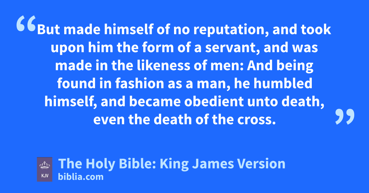 1 If there be therefore any consolation in Christ, if any comfort of love, if any fellowship of the Spirit, if any bowels and mercies, 2 Fulfil ye my joy, that ye be likeminded, having the same love, being of one accord, of one mind. 3 Let nothing be done through strife or vainglory; but in lowliness of mind let each esteem other better than themselves. 4 Look not every man on his own things, but every man also on the things of others. 5 † Let this mind be in you, which was also in Christ Jesus: 6 Who, being in the form of God, thought it not robbery to be equal with God: 7 But made himself of no reputation, and took upon him the form of a servant, and was made in the likeness of men: 8 And being found in fashiona as a man, he humbled himself, and became obedient unto death, even the death of the cross. 9 Wherefore God also hath highly exalted him, and given him a name which is above every name: 10 That at the name of Jesus every knee should bow, of things in heaven, and things in earth, and things under the earth; 11 And that every tongue should confess that Jesus Christ is Lord, to the glory of God the Father.