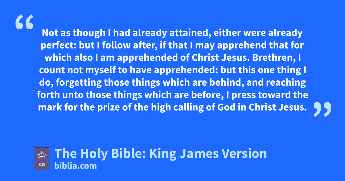 9 And be found in him, not having mine own righteousness, which is of the law, but that which is through the faith of Christ, the righteousness which is of God by faith: 10 That I may know him, and the power of his resurrection, and the fellowship of his sufferings, being made conformable unto his death; 11 If by any means I might attain unto the resurrection of the dead. 12 Not as though I had already attained, either were already perfect: but I follow after, if that I may apprehend that for which also I am apprehended of Christ Jesus. 13 Brethren, I count not myself to have apprehended: but this one thing I do, forgetting those things which are behind, and reaching forth unto those things which are before, 14 I press toward the mark for the prize of the high calling of God in Christ Jesus.