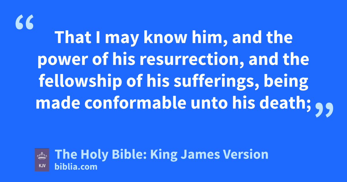 9 And be found in him, not having mine own righteousness, which is of the law, but that which is through the faith of Christ, the righteousness which is of God by faith: 10 That I may know him, and the power of his resurrection, and the fellowship of his sufferings, being made conformable unto his death; 11 If by any means I might attain unto the resurrection of the dead. 12 Not as though I had already attained, either were already perfect: but I follow after, if that I may apprehend that for which also I am apprehended of Christ Jesus. 13 Brethren, I count not myself to have apprehended: but this one thing I do, forgetting those things which are behind, and reaching forth unto those things which are before, 14 I press toward the mark for the prize of the high calling of God in Christ Jesus.