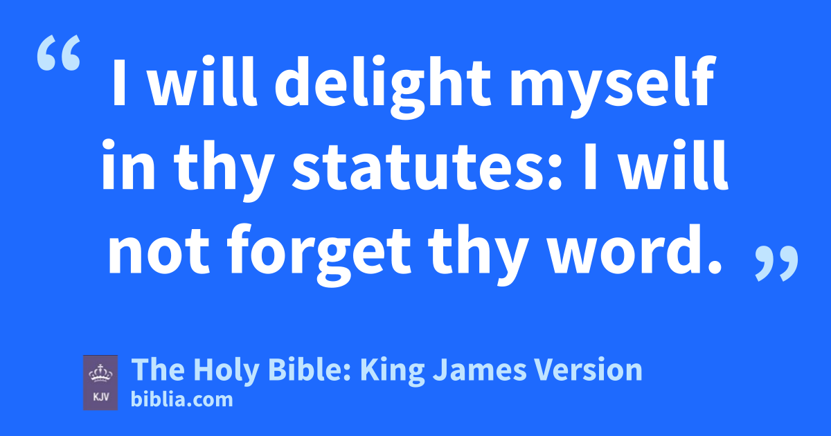 13 With my lips have I declared all the judgments of thy mouth. 14 I have rejoiced in the way of thy testimonies, as much as in all riches. 15 I will meditate in thy precepts, and have respect unto thy ways. 16 I will delight myself in thy statutes: I will not forget thy word.