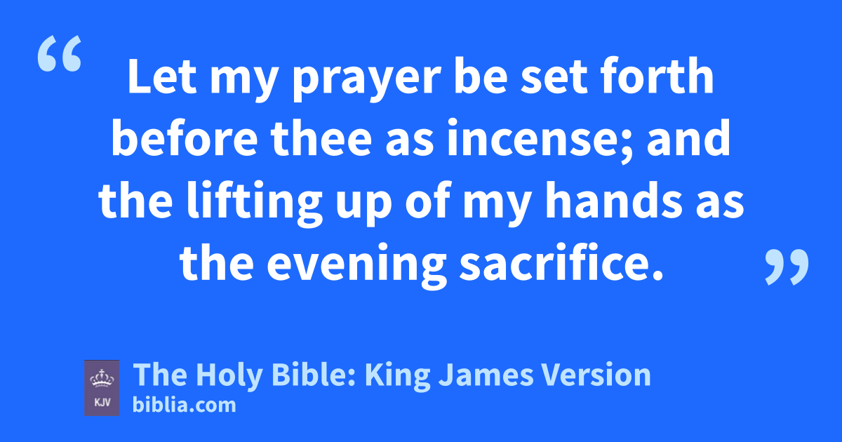 1 LORD, I cry unto thee: make haste unto me; give ear unto my voice, when I cry unto thee. 2 Let my prayer be set forth before thee as incense; and the lifting up of my hands as the evening sacrifice. 3 Set a watch, O LORD, before my mouth; keep the door of my lips. 4 Incline not my heart to any evil thing, to practise wicked works with men that work iniquity: and let me not eat of their dainties.