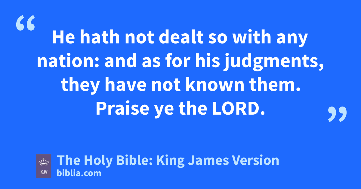 12 Praise the LORD, O Jerusalem; praise thy God, O Zion. 13 For he hath strengthened the bars of thy gates; he hath blessed thy children within thee. 14 He maketh peace in thy borders, and filleth thee with the finest of the wheat. 15 He sendeth forth his commandment upon earth: his word runneth very swiftly. 16 He giveth snow like wool: he scattereth the hoarfrost like ashes. 17 He casteth forth his ice like morsels: who can stand before his cold? 18 He sendeth out his word, and melteth them: he causeth his wind to blow, and the waters flow. 19 He sheweth his wordb unto Jacob, his statutes and his judgments unto Israel. 20 He hath not dealt so with any nation: and as for his judgments, they have not known them. Praise ye the LORD.