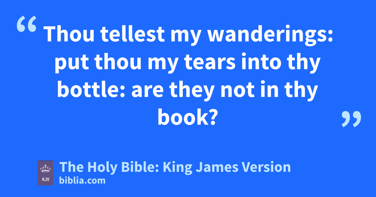 8 Thou tellest my wanderings: put thou my tears into thy bottle: are they not in thy book? 9 When I cry unto thee, then shall mine enemies turn back: this I know; for God is for me. 10 In God will I praise his word: in the LORD will I praise his word. 11 In God have I put my trust: I will not be afraid what man can do unto me. 12 Thy vows are upon me, O God: I will render praises unto thee. 13 For thou hast delivered my soul from death: wilt not thou deliver my feet from falling, that I may walk before God in the light of the living?