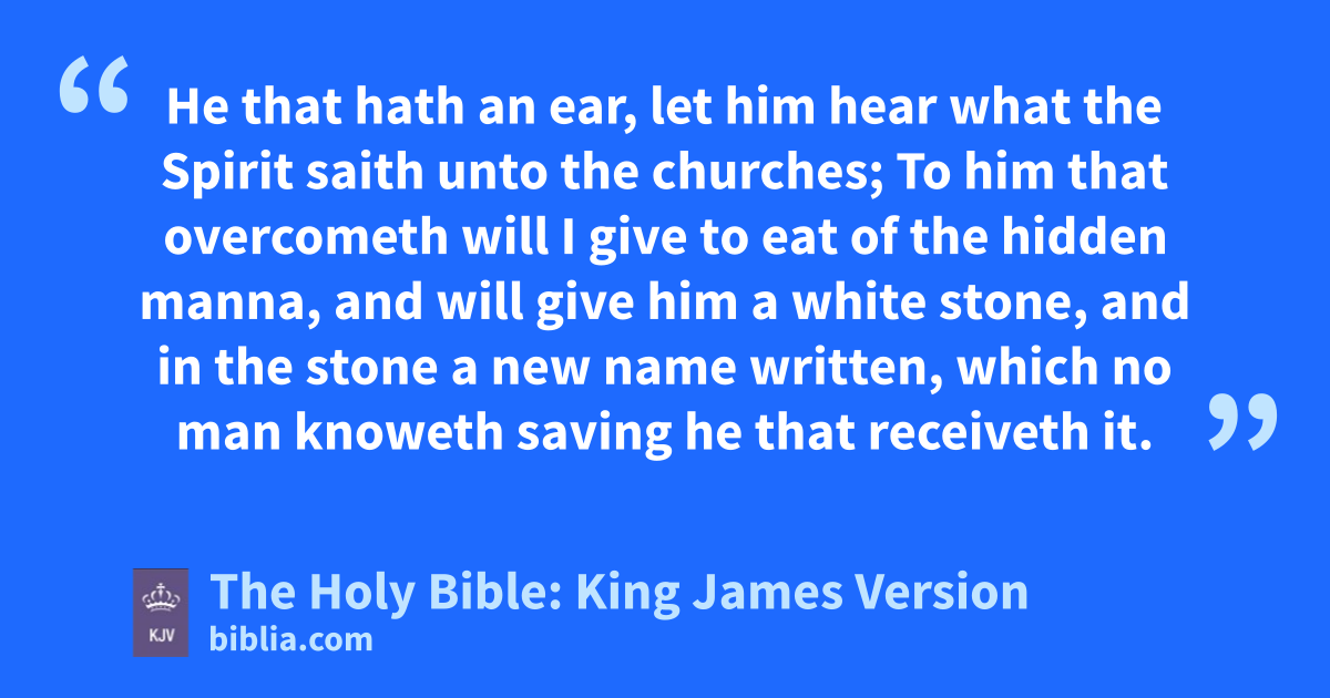 12 And to the angel of the church in Pergamos write; These things saith he which hath the sharp sword with two edges; 13 I know thy works, and where thou dwellest, even where Satan’s seat is: and thou holdest fast my name, and hast not denied my faith, even in those days wherein Antipas was my faithful martyr, who was slain among you, where Satan dwelleth. 14 But I have a few things against thee, because thou hast there them that hold the doctrine of Balaam, who taught Balac to cast a stumblingblock before the children of Israel, to eat things sacrificed unto idols, and to commit fornication. 15 So hast thou also them that hold the doctrine of the Nicolaitans, which thing I hate. 16 Repent; or else I will come unto thee quickly, and will fight against them with the sword of my mouth. 17 He that hath an ear, let him hear what the Spirit saith unto the churches; To him that overcometh will I give to eat of the hidden manna, and will give him a white stone, and in the stone a new name written, which no man knoweth saving he that receiveth it.