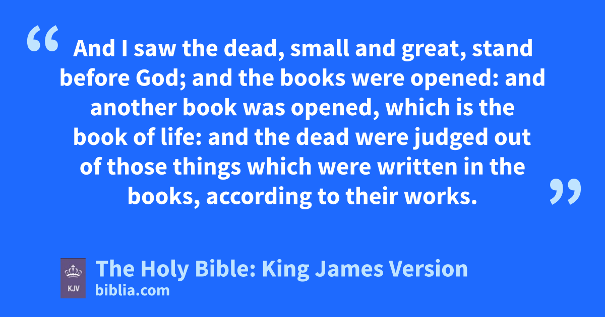 11 And I saw a great white throne, and him that sat on it, from whose face the earth and the heaven fled away; and there was found no place for them. 12 And I saw the dead, small and great, stand before God; and the books were opened: and another book was opened, which is the book of life: and the dead were judged out of those things which were written in the books, according to their works. 13 And the sea gave up the dead which were in it; and death and hella delivered up the dead which were in them: and they were judged every man according to their works. 14 And death and hell were cast into the lake of fire. This is the second death. 15 And whosoever was not found written in the book of life was cast into the lake of fire.