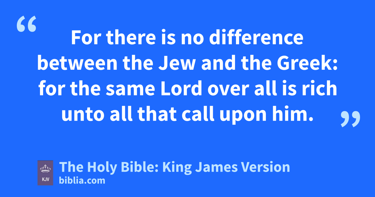 12 For there is no difference between the Jew and the Greek: for the same Lord over all is rich unto all that call upon him. 13 For whosoever shall call upon the name of the Lord shall be saved. 14 How then shall they call on him in whom they have not believed? and how shall they believe in him of whom they have not heard? and how shall they hear without a preacher? 15 And how shall they preach, except they be sent? as it is written, How beautiful are the feet of them that preach the gospel of peace, and bring glad tidings of good things! 16 But they have not all obeyed the gospel. For Esaias saith, Lord, who hath believed our reporta? 17 So then faith cometh by hearing, and hearing by the word of God. 18 But I say, Have they not heard? Yes verily, their sound went into all the earth, and their words unto the ends of the world. 19 But I say, Did not Israel know? First Moses saith, I will provoke you to jealousy by them that are no people, and by a foolish nation I will anger you. 20 But Esaias is very bold, and saith, I was found of them that sought me not; I was made manifest unto them that asked not after me. 21 But to Israel he saith, All day long I have stretched forth my hands unto a disobedient and gainsaying people.