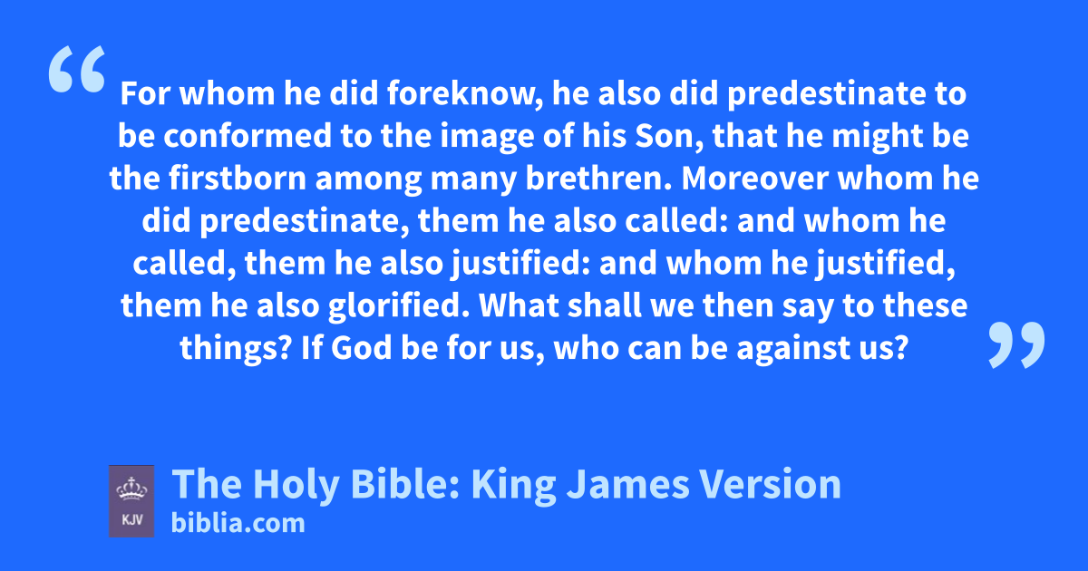 29 For whom he did foreknow, he also did predestinate to be conformed to the image of his Son, that he might be the firstborn among many brethren. 30 Moreover whom he did predestinate, them he also called: and whom he called, them he also justified: and whom he justified, them he also glorified.