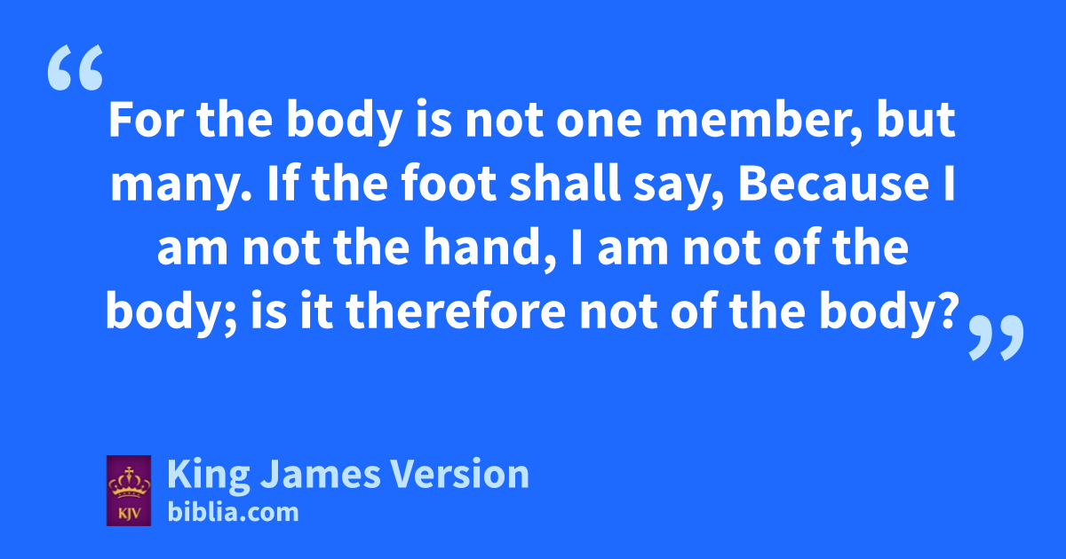 12 For cas the body is one, and hath many members, and all the members of that one body, cbeing many, are one body: dso also is Christ. 13 For eby one Spirit are we all baptized into one body, fwhether we be Jews or †Gentiles, fwhether we be bond or free; and ghave been all made to drink into hone Spirit. 14 For the body is not one member, but many. 15 If the foot shall say, Because I am not the hand, I am not of the body; is it therefore not of the body? 16 And if the ear shall say, Because I am not the eye, I am not of the body; is it therefore not of the body? 17 If the whole body were an eye, where were the hearing? If the whole were hearing, where were the smelling? 18 But now ihath God set the members every one of them in the body, bas jit hath pleased him. 19 And if they were all one member, where were the body? 20 But now are they cmany members, yet but one body. 21 And the eye cannot say unto the hand, I have no need of thee: nor again the head to the feet, I have no need of you. 22 Nay, much more those members of the body, which seem to be more feeble, are necessary: 23 And those members of the body, which we think to be less honourable, upon these we ||bestow more abundant honour; and our kuncomely parts have more abundant comeliness. 24 For our comely parts have no need: but God hath tempered the body together, having given more abundant honour to that part which lacked: 25 That there should be no ||schism in the body; but that the members should have the same care one for another. 26 And whether one member suffer, all the members suffer with it; or one member be honoured, all the members lrejoice with it. 27 Now dmye are the body of Christ, and nmembers oin particular.