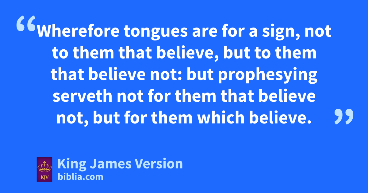 14 aFollow after charity, and aadesire bspiritual gifts, but rather that ye may cprophesy. 2 For he that dspeaketh in an unknown tongue speaketh not unto men, but unto God: for no man †eunderstandeth him; howbeit in the spirit he speaketh mysteries. 3 But he that cprophesieth speaketh unto men to fedification, and gexhortation, and hcomfort. 4 He that speaketh in an unknown tongue edifieth himself; but he that cprophesieth iedifieth the church. 5 I would that ye all dspake with tongues, but jrather that ye cprophesied: for greater is he that prophesieth than he that speaketh with tongues, kexcept he interpret, that the church may receive edifying. 6 Now, brethren, if I come unto you speaking with tongues, what shall I profit you, except I shall speak to you either by lrevelation, or by mknowledge, or by cprophesying, or by ndoctrine? 7 And even things without life giving sound, whether pipe or harp, except they give a distinction in the ||osounds, how shall it be known what is piped or harped? 8 For if pthe trumpet give an uncertain sound, who shall prepare himself to qthe battle? 9 So likewise ye, except ye utter by the tongue words †easy to be understood, how shall it be known what is spoken? for ye shall rspeak into the air. 10 There are, sit may be, tso many ukinds of voices in the world, and none of them is without signification. 11 Therefore if I know not the meaning of the voice, I shall be unto him that speaketh a xbarbarian, and he that speaketh shall be a barbarian unto me. 12 Even so ye, forasmuch as ye are zealous †of spiritual gifts, seek that ye may excel to fthe edifying of the church. 13 Wherefore let him that dspeaketh in an unknown tongue pray kthat he may interpret. 14 For if I pray in an unknown tongue, my spirit prayeth, but my understanding is unfruitful. 15 What is it then? I will pray with the spirit, and I will pray with the understanding also: yI will sing with the spirit, and I will sing zwith the understanding also. 16 Else when thou shalt abless with the spirit, how shall he that occupieth the room of the bunlearned say cAmen at dthy giving of thanks, seeing he understandeth not what thou sayest? 17 For thou verily givest dthanks well, but the other is not edified. 18 I thank my God, I cspeak with tongues more than ye all: 19 Yet in the church I had rather speak five words with my understanding, that by my voice I might eteach others also, than ten thousand words in an unknown tongue. 20 Brethren, fbe not children in understanding: howbeit in malice gbe ye children, but in understanding be †men. 21 hIn the law it is written, iWith men of other tongues and other lips will I speak unto this people; and yet for all that will they not hear me, saith the Lord. 22 Wherefore tongues are for a sign, not to them that believe, but to them that believe not: but kprophesying serveth not for them that believe not, but for them which believe. 23 If therefore the whole church be come together into one place, and all speak with tongues, and there come in those that are bunlearned, or unbelievers, lwill they not say that ye are mad? 24 But if all kprophesy, and there come in one that believeth not, or one bunlearned, he is mconvinced of all, he is njudged of all: 25 And thus are the secrets of his heart made manifest; and so ofalling down on his face phe will worship God, and qreport that God is in you of a truth.