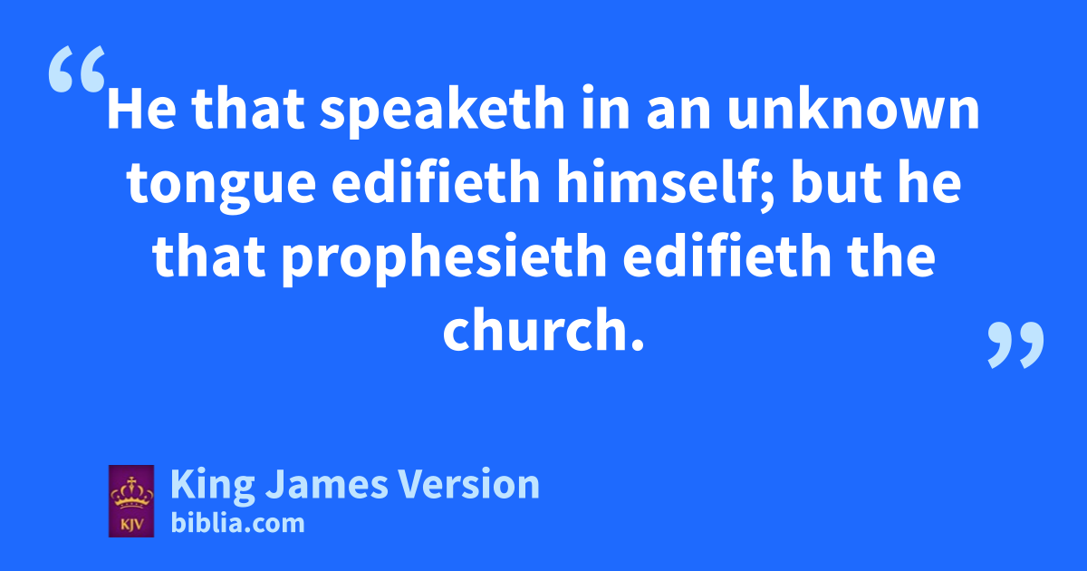 14 aFollow after charity, and aadesire bspiritual gifts, but rather that ye may cprophesy. 2 For he that dspeaketh in an unknown tongue speaketh not unto men, but unto God: for no man †eunderstandeth him; howbeit in the spirit he speaketh mysteries. 3 But he that cprophesieth speaketh unto men to fedification, and gexhortation, and hcomfort. 4 He that speaketh in an unknown tongue edifieth himself; but he that cprophesieth iedifieth the church. 5 I would that ye all dspake with tongues, but jrather that ye cprophesied: for greater is he that prophesieth than he that speaketh with tongues, kexcept he interpret, that the church may receive edifying. 6 Now, brethren, if I come unto you speaking with tongues, what shall I profit you, except I shall speak to you either by lrevelation, or by mknowledge, or by cprophesying, or by ndoctrine? 7 And even things without life giving sound, whether pipe or harp, except they give a distinction in the ||osounds, how shall it be known what is piped or harped? 8 For if pthe trumpet give an uncertain sound, who shall prepare himself to qthe battle? 9 So likewise ye, except ye utter by the tongue words †easy to be understood, how shall it be known what is spoken? for ye shall rspeak into the air. 10 There are, sit may be, tso many ukinds of voices in the world, and none of them is without signification. 11 Therefore if I know not the meaning of the voice, I shall be unto him that speaketh a xbarbarian, and he that speaketh shall be a barbarian unto me. 12 Even so ye, forasmuch as ye are zealous †of spiritual gifts, seek that ye may excel to fthe edifying of the church. 13 Wherefore let him that dspeaketh in an unknown tongue pray kthat he may interpret. 14 For if I pray in an unknown tongue, my spirit prayeth, but my understanding is unfruitful. 15 What is it then? I will pray with the spirit, and I will pray with the understanding also: yI will sing with the spirit, and I will sing zwith the understanding also. 16 Else when thou shalt abless with the spirit, how shall he that occupieth the room of the bunlearned say cAmen at dthy giving of thanks, seeing he understandeth not what thou sayest? 17 For thou verily givest dthanks well, but the other is not edified. 18 I thank my God, I cspeak with tongues more than ye all: 19 Yet in the church I had rather speak five words with my understanding, that by my voice I might eteach others also, than ten thousand words in an unknown tongue. 20 Brethren, fbe not children in understanding: howbeit in malice gbe ye children, but in understanding be †men. 21 hIn the law it is written, iWith men of other tongues and other lips will I speak unto this people; and yet for all that will they not hear me, saith the Lord. 22 Wherefore tongues are for a sign, not to them that believe, but to them that believe not: but kprophesying serveth not for them that believe not, but for them which believe. 23 If therefore the whole church be come together into one place, and all speak with tongues, and there come in those that are bunlearned, or unbelievers, lwill they not say that ye are mad? 24 But if all kprophesy, and there come in one that believeth not, or one bunlearned, he is mconvinced of all, he is njudged of all: 25 And thus are the secrets of his heart made manifest; and so ofalling down on his face phe will worship God, and qreport that God is in you of a truth.