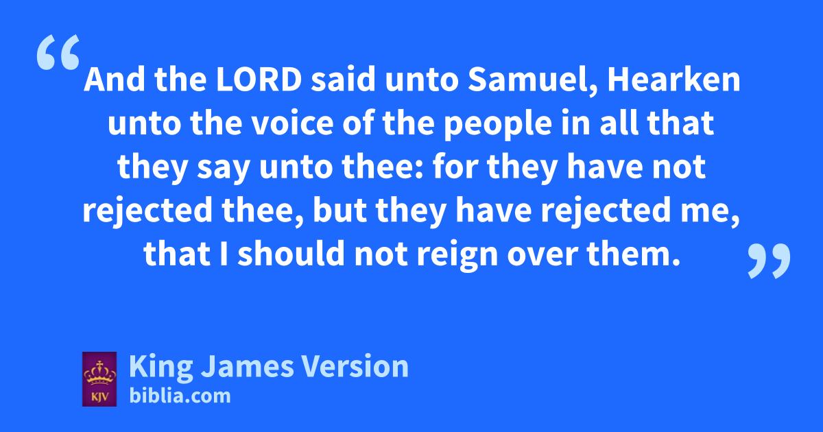 8 *And it came to pass, when Samuel was old, that he amade his bsons judges over Israel. 2 Now the name of his firstborn was ||Joel; and the name of his second, Abiah: they were judges in cBeer-sheba. 3 And his sons walked not in his ways, but turned aside dafter lucre, and etook bribes, and perverted judgment. 4 *Then all the elders of Israel gathered themselves together, and came to Samuel unto fRamah, 5 And said unto him, Behold, thou art old, and thy sons walk not in thy ways: now gmake us a king to judge us like all the nations. 6 But the thing †displeased Samuel, when they said, Give us a king to judge us. And Samuel prayed unto the Lord. 7 And the Lord said unto Samuel, Hearken unto the voice of the people in all that they say unto thee: for hthey have not rejected thee, but ithey have rejected me, that I should not reign over them. 8 According to all the works which they have done since the day that I brought them up out of Egypt even unto this day, wherewith they have forsaken me, and served other gods, so do they also unto thee. 9 Now therefore ||hearken unto their voice: ||howbeit yet protest solemnly unto them, and jshew them the manner of the king that shall reign over them.