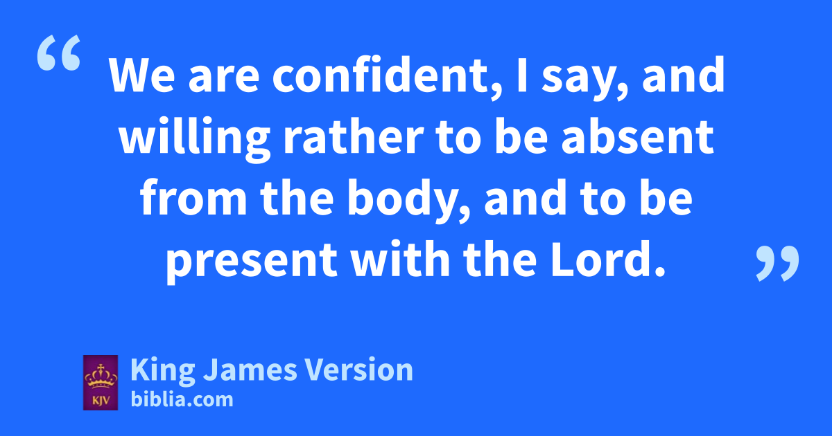 5 For we know that if aour earthly house of bthis tabernacle were dissolved, we have a building of God, an house cnot made with hands, eternal in the heavens. 2 For in this dwe groan, earnestly desiring to be clothed upon with our house which is from heaven: 3 If so be that ebeing clothed we shall not be found naked. 4 For we that are in bthis tabernacle ddo groan, being burdened: not ffor that gwe would be unclothed, gbut hclothed upon, that mortality might be hswallowed up of life. 5 Now ihe that hath wrought us for the selfsame thing is God, who also hath kgiven unto us the earnest of the Spirit. 6 Therefore we are always confident, knowing that, whilst we are at home in the body, we are absent from the Lord: 7 (For lwe walk by faith, mnot by sight:) 8 nWe are confident, I say, and owilling rather to be absent from the body, and to be present with the Lord.