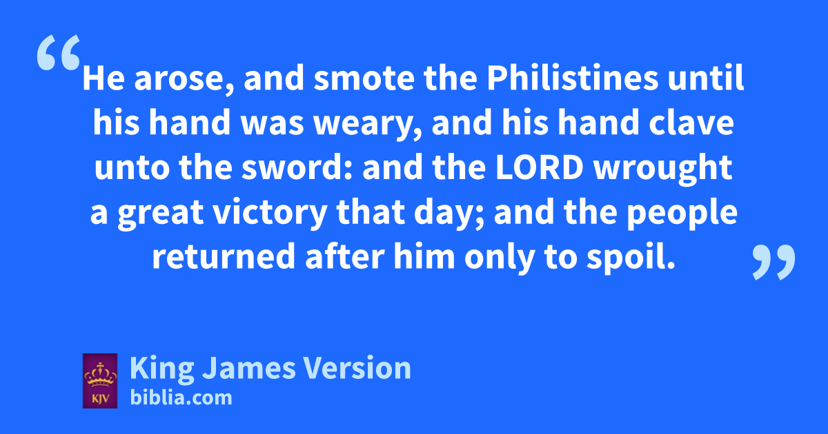 8 lThese be the names of the mighty men whom David had: ||The Tachmonite that sat in the seat, chief among mthe captains; the same was Adino the Eznite: ||he lift up his spear against eight hundred, †whom he slew at one time. 9 And after him was nEleazar the son of Dodo the Ahohite, one of the three mighty men with David, when othey defied the Philistines that were there gathered together to battle, and the men of Israel were gone away: 10 He arose, and smote the Philistines until his hand was weary, and his hand clave unto the sword: and the Lord wrought a great pvictory that day; and the people returned after him only to spoil. 11 And after him was qShammah the son of Agee the Hararite. And the Philistines were gathered together ||into a troop, where was a piece of ground full of lentiles: and the people fled from the Philistines. 12 But he stood in the midst of the ground, and defended it, and slew the Philistines: and the Lord wrought a great pvictory. 13 And ||three of the thirty chief went down, and came to David in the harvest time unto rthe cave of Adullam: and the troop of the Philistines pitched in sthe valley of Rephaim. 14 And David was then in tan hold, and uthe garrison of the Philistines was then in Beth-lehem. 15 And David longed, and said, Oh that one would give me drink of the water of the well of Beth-lehem, which is by the gate! 16 And the three mighty men brake through the host of the Philistines, and drew water out of the well of Beth-lehem, that was by the gate, and took it, and brought it to David: nevertheless he would not drink thereof, but poured it out unto the Lord. 17 And he said, Be it far from me, O Lord, that I should do this: is not this wthe blood of the men that went in jeopardy of their lives? therefore he would not drink it. These things did these three mighty men. 18 And Abishai, the brother of Joab, the son of Zeruiah, was chief among three. And he lifted up his spear against three hundred, †and slew them, and had the name among three. 19 Was he not most honourable of three? therefore he was their captain: howbeit he attained not unto the xfirst three. 20 And yBenaiah the son of Jehoiada, the son of a valiant man, of zKabzeel, †who had done many acts, he slew two †lionlike men of aMoab: he went down also and slew a lion in the midst of a pit in time of snow: 21 And he slew an Egyptian, †a goodly man: and the Egyptian had a spear in his hand; but he went down to him with a staff, and plucked the spear out of the Egyptian’s hand, and slew him with his own spear. 22 These things did Benaiah the son of Jehoiada, and had the name among three mighty men. 23 He was ||more honourable than the thirty, but he attained not to the bfirst three. And David set him over his ||guard.