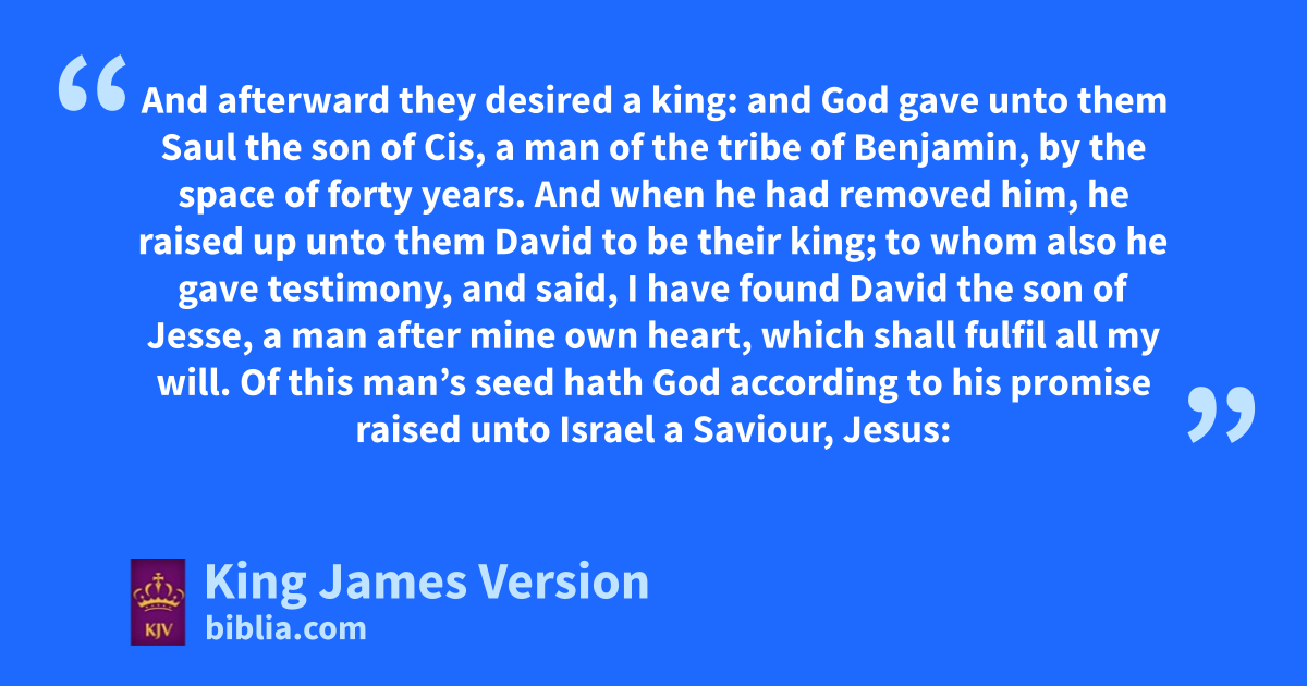 Men of Israel, and gye that fear God, give audience. 17 hThe God of this people of Israel ichose our fathers, and exalted the people kwhen they dwelt as strangers in the land of Egypt, and lwith an high arm brought he them out of it. 18 And about the time of mforty years †suffered he their manners in the wilderness. 19 And when nhe had destroyed seven nations in the land of Chanaan, ohe divided their land to them by lot. 20 And after that phe gave unto them judges about the space of qfour hundred and fifty years, until rSamuel the prophet. 21 And afterward sthey desired a king: and tGod gave unto them Saul the son of Cis, ua man of the tribe of Benjamin, by the space of forty years. 22 And wwhen he had removed him, xhe raised up unto them David to be their king; to whom also he gave testimony, and said, yI have found David the son of Jesse, za man after mine own heart, awhich shall fulfil all my will. 23 bOf this man’s seed hath God according cto his promise raised unto Israel da Saviour, Jesus: 24 When eJohn had first preached before his fcoming the baptism of repentance to all the people of Israel. 25 And as John gfulfilled his course, he said, hWhom think ye that I am? I am not he. But, behold, there cometh one after me, whose shoes of his feet I am not worthy to loose. 26 Men and brethren, children of the stock of Abraham, and iwhosoever among you feareth God, kto you is the word of this salvation sent. 27 For they that dwell at Jerusalem, and ltheir rulers, mbecause they knew him not, nor yet the voices of the prophets nwhich are read every sabbath day, they have ofulfilled them in condemning him. 28 And pthough they found no cause of death in him, yet desired they Pilate that he should be slain. 29 And when qthey had fulfilled all that was written of him, rthey took him down from sthe tree, and laid him in a sepulchre. 30 But tGod raised him from the dead: 31 And uhe was seen many days of them which vcame up with him wfrom Galilee to Jerusalem, who are his xwitnesses unto the people. 32 And we declare unto you glad tidings, how that ythe promise which was made unto the fathers, 33 God hath fulfilled the same unto us their children, in that he hath traised up Jesus again; as it is also written in the second psalm, zThou art my Son, this day have I begotten thee. 34 And as concerning that he traised him up from the dead, now no more ato return to corruption, he said on this wise, I will give you bthe sure †mercies of David. 35 Wherefore he saith also in another psalm, cThou shalt not suffer thine Holy One to see corruption. 36 For David, ||after he had served his own generation by the will of God, dfell on sleep, and was elaid unto his fathers, and asaw corruption: 37 But he, whom God raised again, asaw no corruption. 38 Be it known unto you therefore, men and brethren, that fthrough this man is preached unto you the gforgiveness of sins: 39 And hby him all that believe are ijustified from all things, kfrom which ye could not be justified by the law of Moses. 40 Beware therefore, lest that come upon you, which is spoken of in lthe prophets; 41 mBehold, ye despisers, and wonder, and perish: for I work a work in your days, a work which ye shall in no wise believe, though a man declare it unto you.