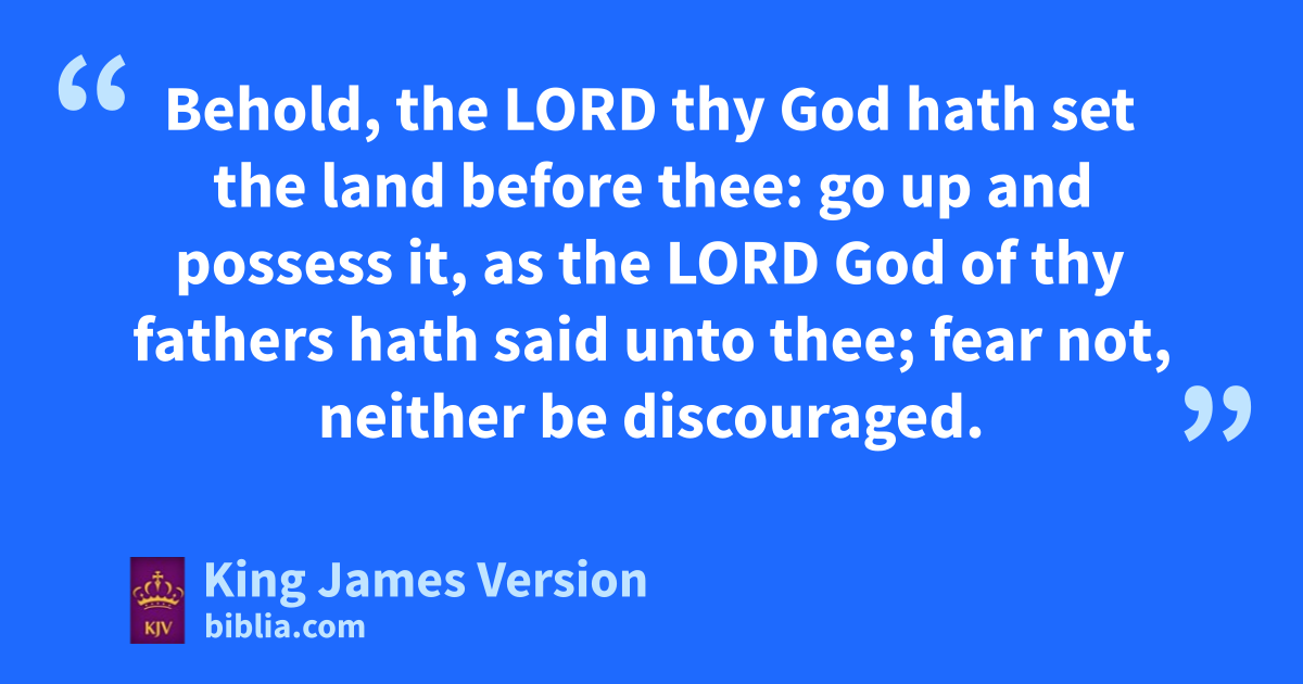 19 *And when we departed from Horeb, xwe went through all that great and terrible wilderness, which ye saw by the way of the mountain of the Amorites, as the Lord our God commanded us; and ywe came to Kadesh-barnea. 20 And I said unto you, Ye are come unto the mountain of the Amorites, which the Lord our God doth give unto us. 21 Behold, the Lord thy God hath set the land before thee: go up and possess it, as the Lord God of thy fathers hath said unto thee; fear not, neither zbe discouraged. 22 And ye came near unto me every one of you, and said, We will send men before us, and they shall search us out the land, and bring us word again by what way we must go up, and into what cities we shall come. 23 And the saying pleased me well: and aI took twelve men of you, one of a tribe: 24 And bthey turned and went up into the mountain, and came unto cthe valley of Eshcol, and searched it out. 25 And they took of the fruit of the land in their hands, and brought it down unto us, and brought us word again, and said, It is a good land which the Lord our God doth give us. 26 Notwithstanding ye would not go up, but drebelled against the commandment of the Lord your God: 27 And eye murmured in your tents, and said, Because the Lord fhated us, he hath brought us forth out of the land of Egypt, to deliver us into the hand of the Amorites, to destroy us. 28 Whither shall we go up? gour brethren have †discouraged our heart, saying, hThe people is greater and taller than we; the cities are great and walled up to heaven; and moreover we have seen the sons of the iAnakims there. 29 Then I said unto you, Dread not, neither be afraid of them. 30 The Lord your God which goeth before you, jhe shall fight for you, according to all that he did for you in Egypt before your eyes; 31 And in the wilderness, where thou hast seen how that the Lord thy God kbare thee, as a man doth bear his son, in all the way that ye went, until ye came into this place. 32 Yet in this thing lye did not believe the Lord your God, 33 mWho went in the way before you, nto search you out a place to pitch your tents in, in fire by night, to shew you by what way ye should go, and in a cloud by day. 34 And the Lord heard the voice of your words, and was wroth, oand sware, saying, 35 pSurely there shall not one of these men of this evil generation see that good land, which I sware to give unto your fathers, 36 qSave Caleb the son of Jephunneh; he shall see it, and to him will I give the land that he hath trodden upon, and to his children, because he hath †wholly followed the Lord. 37 Also the Lord rwas angry with me for your sakes, saying, Thou also shalt not go in thither. 38 But sJoshua the son of Nun, twhich standeth before thee, he shall go in thither: uencourage him: for he shall cause Israel to inherit it. 39 Moreover wyour little ones, which ye said should be a prey, and your children, which in that day xhad no knowledge between good and evil, they shall go in thither, and unto them will I give it, and they shall possess it. 40 But as for you, yturn you, and take your journey into the wilderness by the way of the Red sea. 41 Then ye answered and said unto me, zWe have sinned against the Lord, we will go up and fight, according to all that the Lord our God commanded us. And when ye had girded on every man his weapons of war, ye were ready to go up into the hill. 42 And the Lord said unto me, Say unto them, aGo not up, neither fight; for I am not among you; lest ye be smitten before your enemies. 43 So I spake unto you; and ye would not hear, but brebelled against the commandment of the Lord, and †went presumptuously up into the hill. 44 And cthe Amorites, which dwelt in that mountain, came out against you, and chased you, das bees do, and destroyed you in Seir, even unto Hormah. 45 And ye returned and wept before the Lord; but the Lord would not hearken to your voice, nor give ear unto you. 46 So eye abode in Kadesh many days, according unto the days that ye abode there.