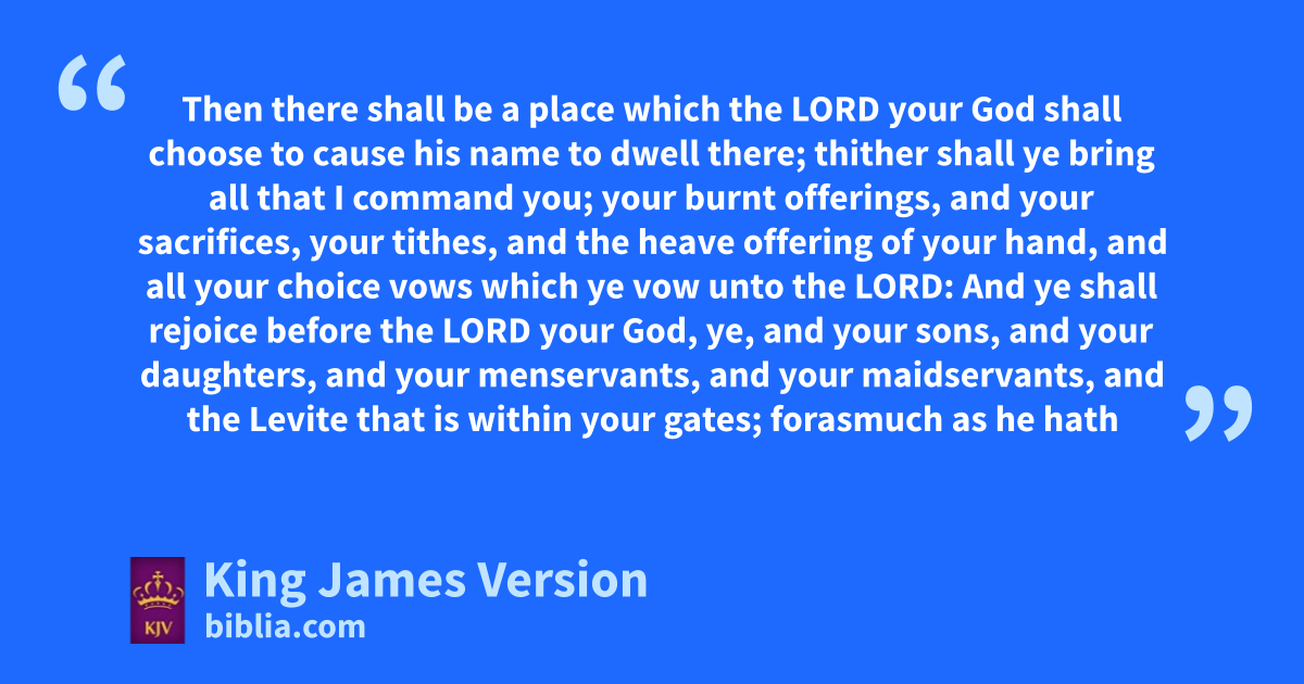 12 aThese are the statutes and judgments, which ye shall observe to do in the land, which the Lord God of thy fathers giveth thee to possess it, ball the days that ye live upon the earth. 2 Ye shall utterly destroy all the places, wherein the nations which ye shall ||possess served their gods, cupon the high mountains, and upon the hills, and under every green tree: 3 And ye shall †overthrow their altars, and break dtheir pillars, and burn their groves with fire; and eye shall hew down the graven images of their gods, and destroy the names of them out of that place. 4 fYe shall not do so unto the Lord your God. 5 But gunto the place which the Lord your God shall choose out of all your tribes to put his name there, even unto his habitation shall ye seek, and thither thou shalt come: 6 And thither ye shall bring your burnt offerings, and your sacrifices, and your htithes, and heave offerings of your hand, and your vows, and your freewill offerings, and ithe firstlings of your herds and of your flocks: 7 And jthere ye shall eat before the Lord your God, and kye shall rejoice in all lthat ye put your hand unto, ye and your households, wherein the Lord thy God hath blessed thee. 8 Ye shall not do after all the things that we do here this day, mevery man whatsoever is right in his own eyes. 9 For ye are not as yet come to the rest and to the inheritance, which the Lord your God giveth you. 10 But when nye go over Jordan, and dwell in the land which the Lord your God giveth you to inherit, and when he giveth you rest from all your enemies round about, so that ye dwell in safety; 11 Then there shall be oa place which the Lord your God shall choose to cause his name to dwell there; thither shall ye bring all that I command you; your burnt offerings, and your sacrifices, your tithes, and the heave offering of your hand, and all †your choice vows which ye vow unto the Lord: 12 And pye shall rejoice before the Lord your God, ye, and your sons, and your daughters, and your menservants, and your maidservants, and the Levite that is within your gates; forasmuch as qhe hath no part nor inheritance with you. 13 rTake heed to thyself that thou offer not thy burnt offerings in every place that thou seest: 14 sBut in the place which the Lord shall choose in one of thy tribes, there thou shalt offer thy burnt offerings, and there thou shalt do all that I command thee. 15 Notwithstanding tthou mayest kill and eat flesh in all thy gates, whatsoever thy soul lusteth after, according to the blessing of the Lord thy God which he hath given thee: uthe unclean and the clean may eat thereof, xas of the roebuck, and as of the hart. 16 yOnly ye shall not eat the blood; ye shall pour it upon the earth as water. 17 Thou mayest not eat within thy gates the tithe of thy corn, or of thy wine, or of thy oil, or the firstlings of thy herds or of thy flock, nor any of thy vows which thou vowest, nor thy freewill offerings, or heave offering of thine hand: 18 zBut thou must eat them before the Lord thy God in the place which the Lord thy God shall choose, thou, and thy son, and thy daughter, and thy manservant, and thy maidservant, and the Levite that is within thy gates: and thou shalt rejoice before the Lord thy God in all lthat thou puttest thine hands unto. 19 aTake heed to thyself that thou forsake not the Levite †as long as thou livest upon the earth. 20 When the Lord thy God shall enlarge thy border, bas he hath promised thee, and thou shalt say, I will eat flesh, because thy soul longeth to eat flesh; thou mayest eat flesh, cwhatsoever thy soul lusteth after. 21 If the place which the Lord thy God hath chosen to put his name there be too far from thee, then thou shalt kill of thy herd and of thy flock, which the Lord hath given thee, as I have commanded thee, and thou shalt eat in thy gates cwhatsoever thy soul lusteth after. 22 cEven as the roebuck and the hart is eaten, so thou shalt eat them: the unclean and the clean shall eat of them alike. 23 dOnly †be sure that thou eat not the blood: efor the blood is the life; and thou mayest not eat the life with the flesh. 24 Thou shalt not eat it; thou shalt pour it upon the earth as water. 25 Thou shalt not eat it; fthat it may go well with thee, and with thy children after thee, gwhen thou shalt do that which is right in the sight of the Lord. 26 Only thy hholy things which thou hast, and ithy vows, thou shalt take, and go unto the place which the Lord shall choose: 27 And kthou shalt offer thy burnt offerings, the flesh and the blood, upon the altar of the Lord thy God: and the blood of thy sacrifices shall be poured out upon the altar of the Lord thy God, and thou shalt eat the flesh. 28 Observe and hear all these words which I command thee, lthat it may go well with thee, and with thy children after thee for ever, when thou doest that which is good and right in the sight of the Lord thy God. 29 When mthe Lord thy God shall cut off the nations from before thee, whither thou goest to possess them, and thou †succeedest them, and dwellest in their land; 30 Take heed to thyself nthat thou be not snared †by following them, after that they be destroyed from before thee; and that thou inquire not after their gods, saying, How did these nations serve their gods? even so will I do likewise. 31 oThou shalt not do so unto the Lord thy God: for every †abomination to the Lord, which he hateth, have they done unto their gods; for peven their sons and their daughters they have burnt in the fire to their gods. 32 What thing soever I command you, observe to do it: qthou shalt not add thereto, nor diminish from it.